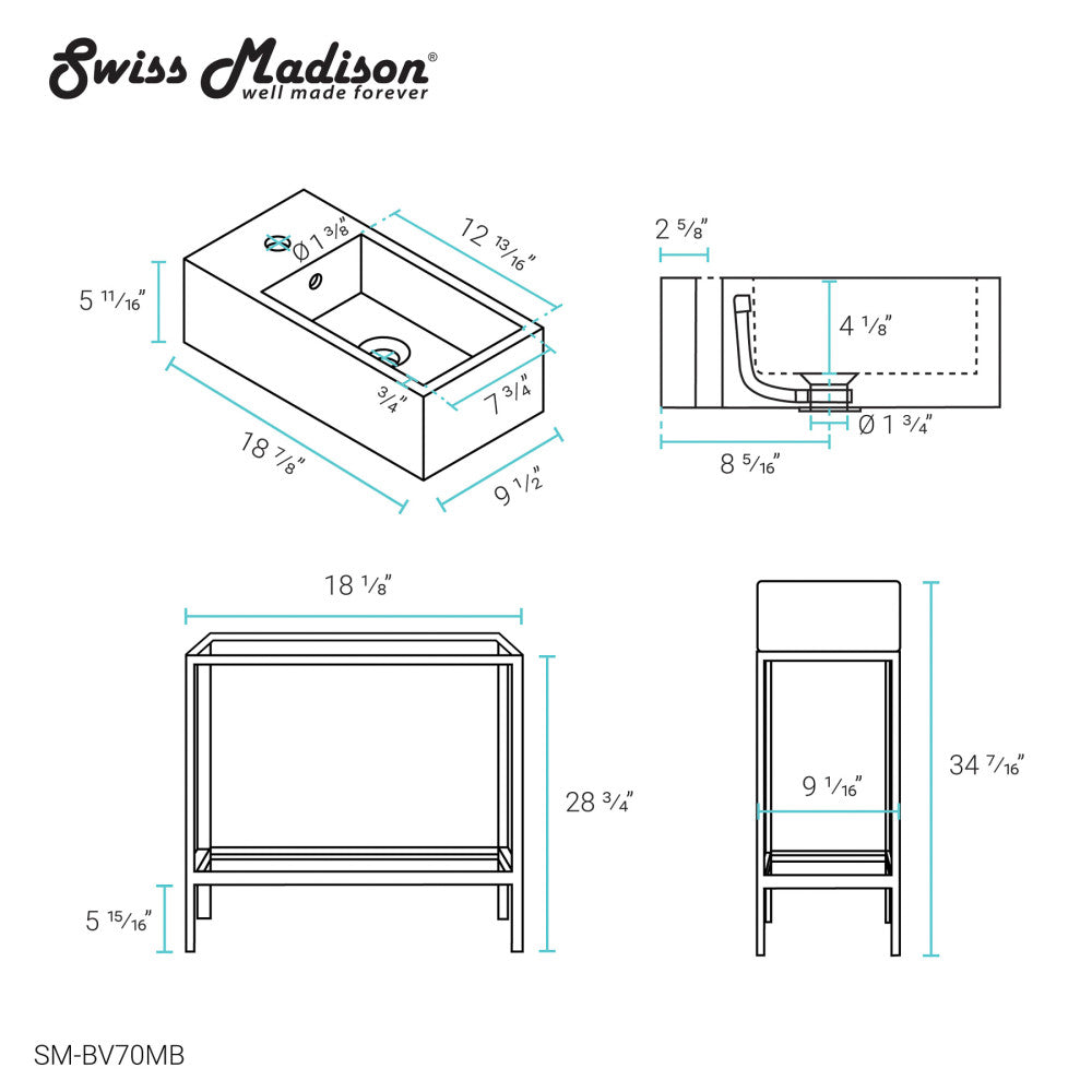Pierre 19.5 Single, Freestanding, Open Shelf, Matte Black Frame Bathroom Vanity