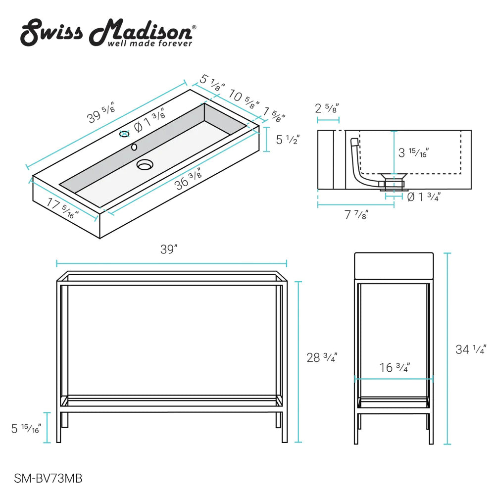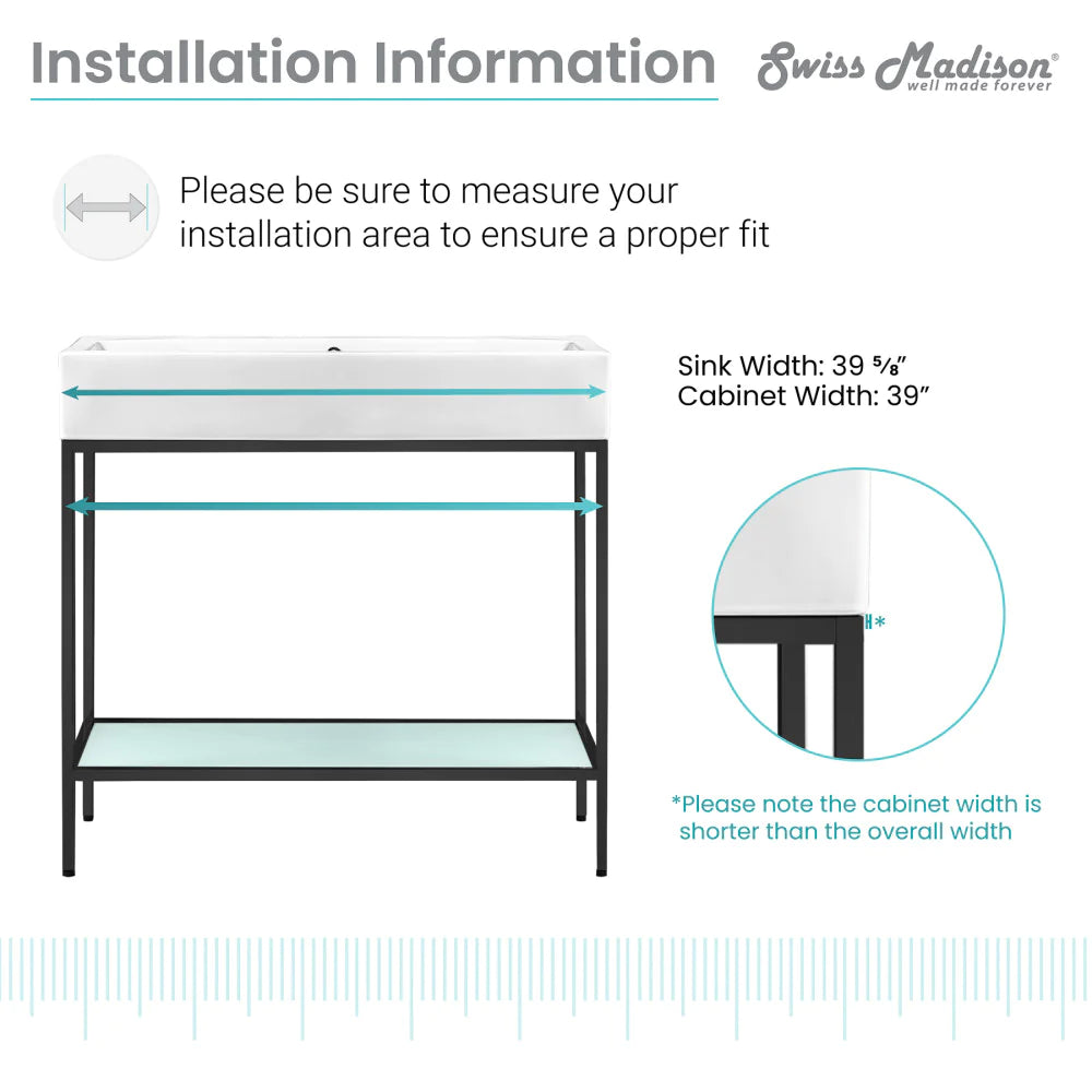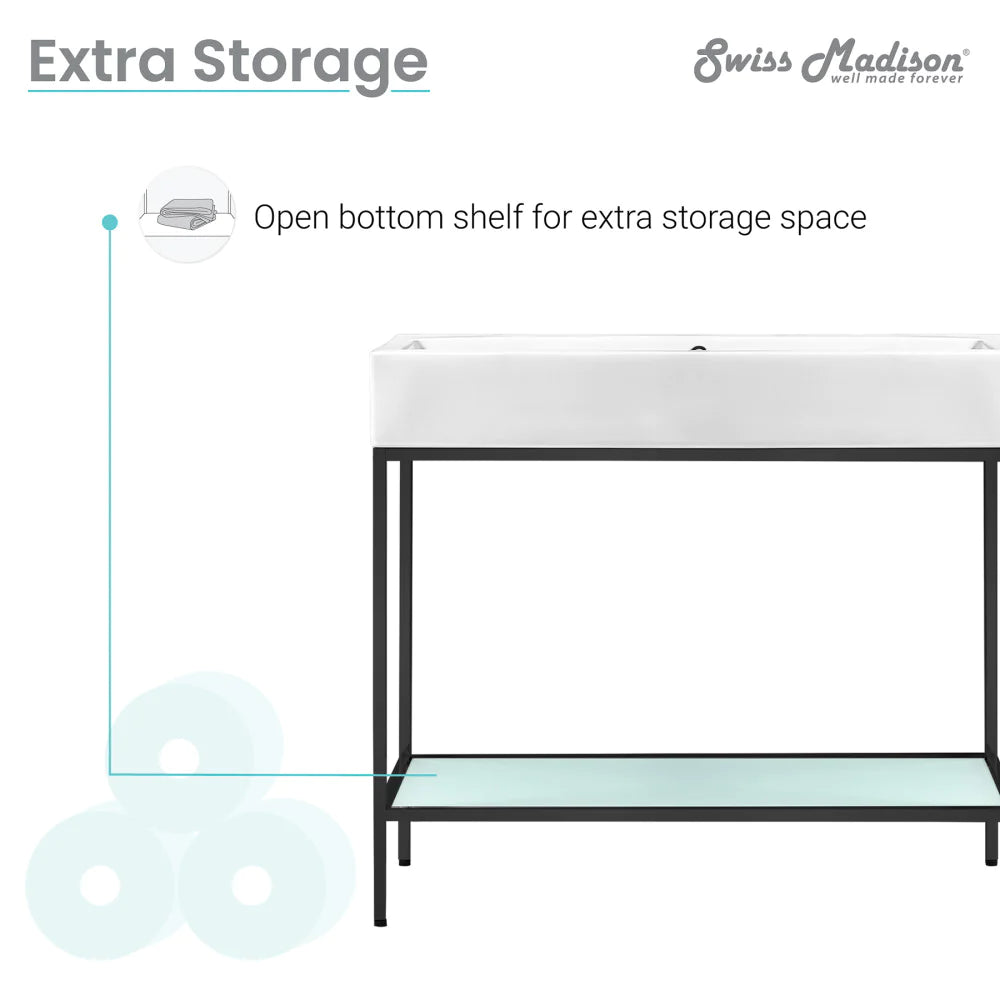 Pierre 40 Single, Freestanding, Open Shelf, Matte Black Metal Frame Bathroom Vanity