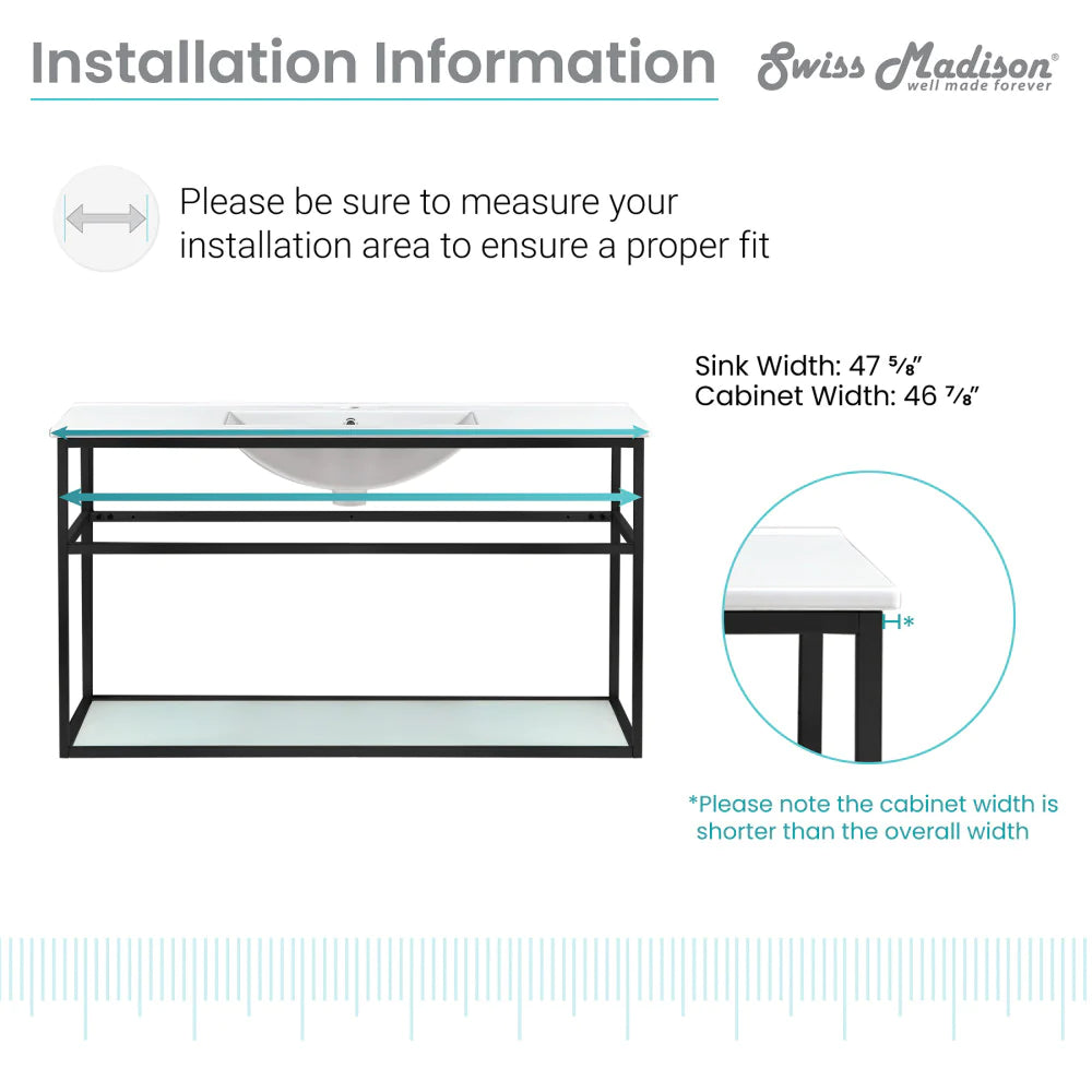 Pierre 48 Single, Metal Frame, Open Shelf, Bathroom Vanity