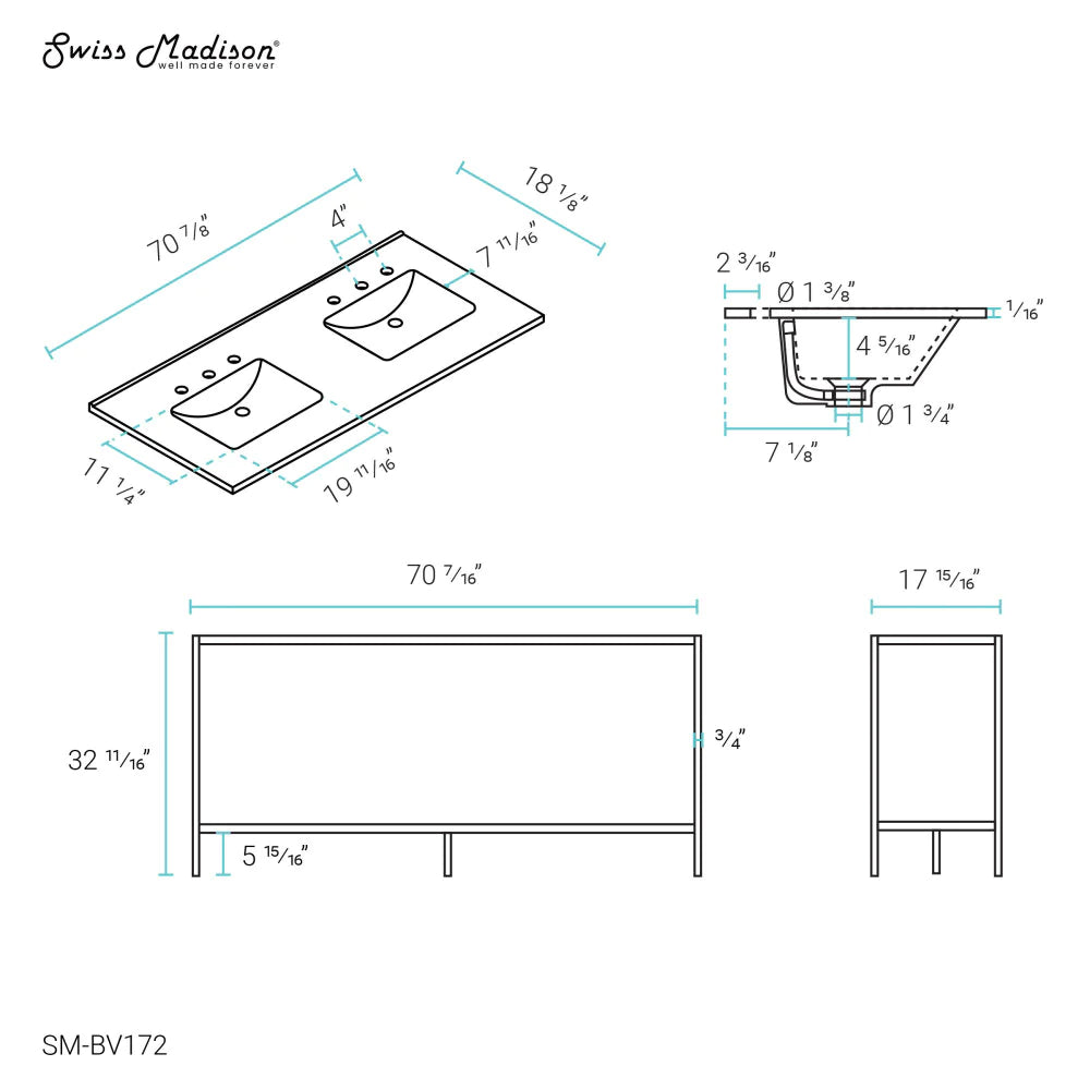 Pierre 72 Double, Freestanding, Open Shelf, Matte Black Metal Frame Bathroom Vanity